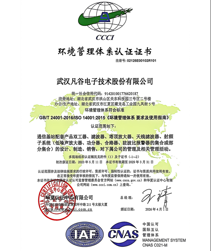 公司自2004年通過ISO14001環境管理體系認證,目前保持有ISO14001:2015管理體系認證證書。