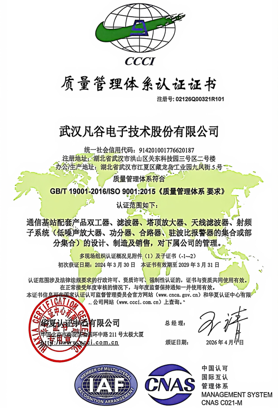 公司自2000年通過ISO9001質量管理體系認證,目前保持有ISO9001:2015管理體系認證證書。